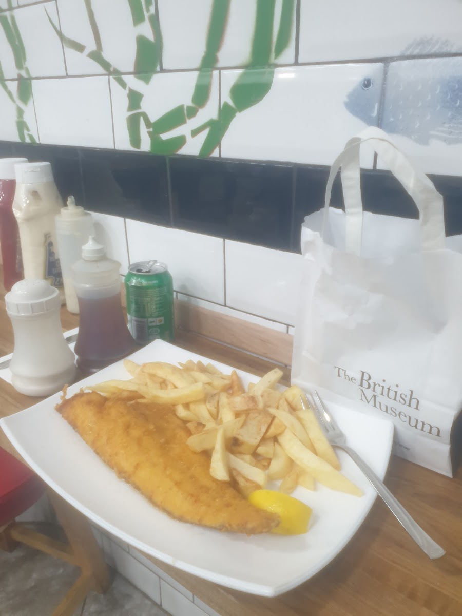 I tried fish and chips for the first time at this spot in London, and it was genuinely great. The fish was fresh, nice and crispy, and the chips were cooked really well. The staff were friendly, and they even gave me a complimentary bowl of fruits in juice, which was a lovely surprise. Great place to try authentic English fish and chips!